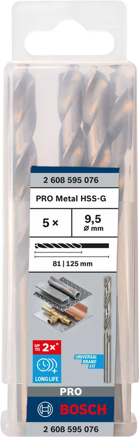 Bosch HSS-G Metal Drill Bits - 2608595076 - 9.5mm x 81mm x 125mm Hss Bit (Pack of 5)