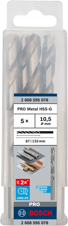 Bosch HSS-G Metal Drill Bits - 2608595078 - 10.5mm x 87mm x 133mm Hss Bit (Pack of 5)